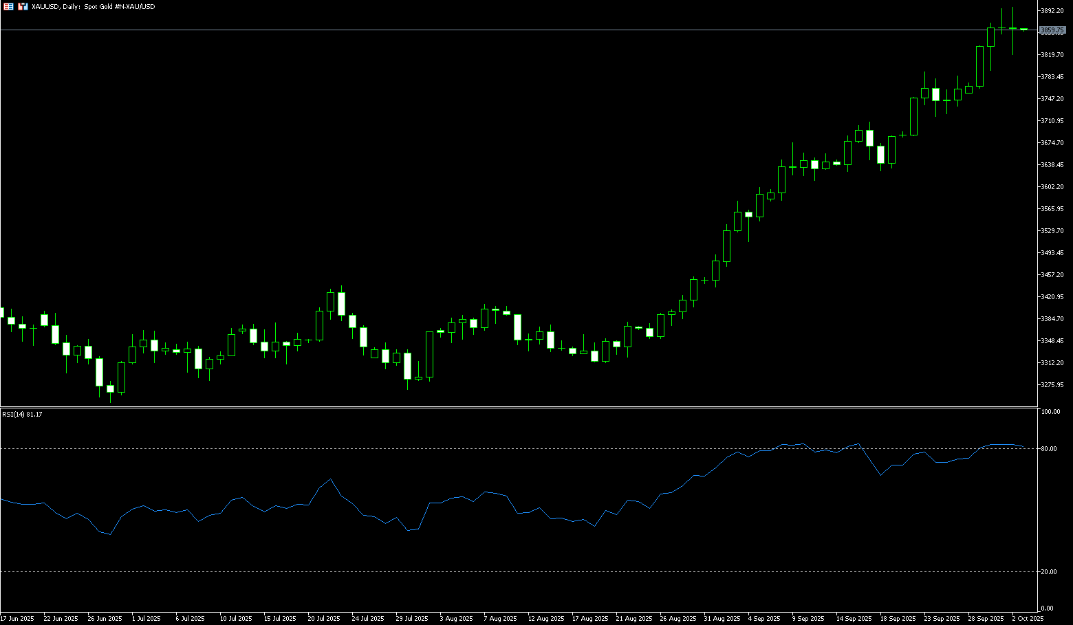 On Thursday, spot gold traded near $3,860/oz, reaching a new all-time high of $3,896.90/oz. Gold prices were boosted by a weakening dollar and safe-haven demand triggered by the US government shutdown. Weak employment data also reinforced market expectations for a Federal Reserve rate cut this month. The US government shutdown has been a key driver of gold's gains this week. Due to partisan disagreements, the White House and Congress failed to reach a funding agreement, and the government largely shut down from midnight on Tuesday, putting thousands of federal jobs at risk. Amidst this geopolitical and policy uncertainty, investors naturally turned to gold as a safe haven, especially in a low interest rate environment, which further enhances its appeal. As the world's reserve currency, the movement of the US dollar directly impacts the appeal of dollar-denominated gold. A depreciating dollar means foreign investors can exchange less of their own currency for more gold.