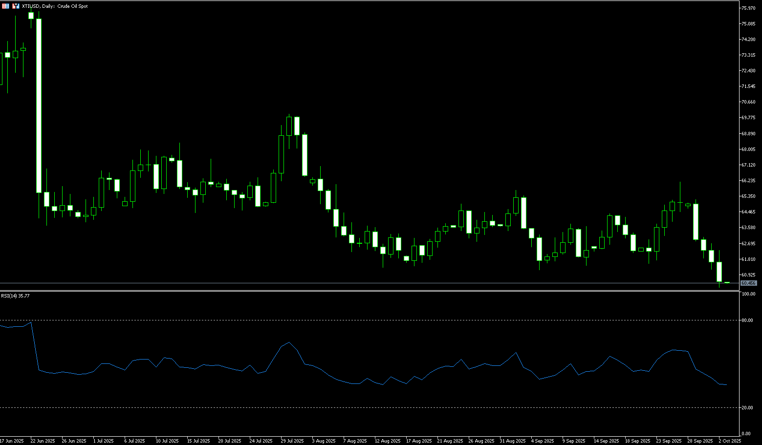 WTI crude oil futures fell over 2% on Thursday to around $60.20 a barrel, a four-month low and the fourth consecutive day of decline, as supply concerns weighed on sentiment. OPEC+ is expected to approve a November production increase of up to 500,000 barrels per day, triple the October increase, as Saudi Arabia pushes to regain market share. Meanwhile, signs of oversupply are emerging, with OPEC crude oil production rising last month and Saudi Arabia restoring the first batch of previously suspended supplies, according to a Bloomberg survey. Furthermore, US crude oil and gasoline inventories are rising, and oil exports from Iraqi Kurdistan will resume through Turkey's Kayhan terminal following an agreement to restart flows. Furthermore, risk sentiment has deteriorated further due to the ongoing US government shutdown, with the White House warning of potential large-scale layoffs and no progress on a resolution. Nevertheless, continued purchases by China for its strategic reserve have provided some support.