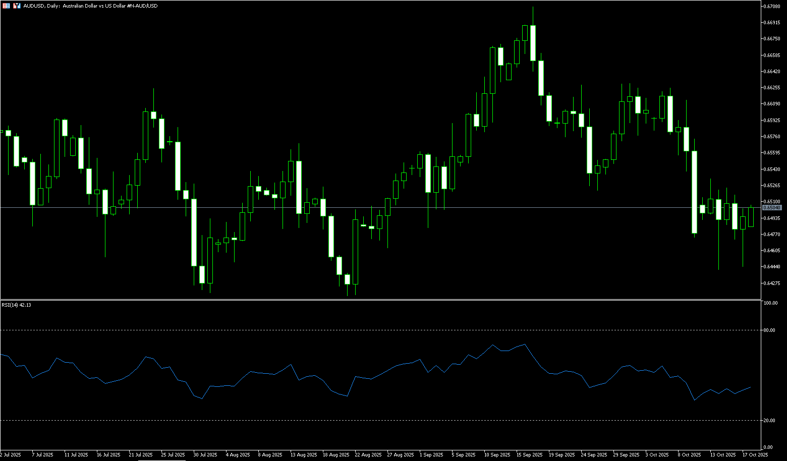 The Australian dollar fell against the US dollar in late last week, weakening below $0.6500 before the weekend. Following the release of weaker-than-expected Australian employment data, the AUD came under significant pressure, falling to $0.6470 before recovering slightly, but overall it remains within a bearish trend. Market bets on a near-term interest rate cut by the Reserve Bank of Australia (RBA) have increased. Futures prices are pricing in an 85% probability of a 25 basis point cut to 3.35%, up from a 50% probability earlier this week, while a further cut to 3.10% is now fully anticipated. This comes against the backdrop of an unexpected rise in the unemployment rate and a decline in job creation, suggesting further easing in the labor market. However, the central bank may await the release of the third-quarter CPI report before deciding on any interest rate adjustments. Meanwhile, investors continue to weigh the risks associated with escalating US-China trade tensions. In the latest news, China accused the US of exaggerating its rare earth export controls, calling the resulting "panic" unnecessary and expressing its willingness to engage in trade negotiations. Furthermore, the continued weakness of the US dollar due to trade frictions, the government shutdown, and the slowing US economy provided support for the Australian dollar.