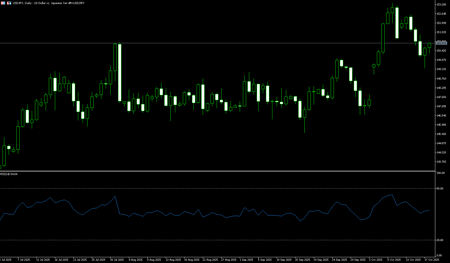 Recent technical analysis suggests that USD/JPY may have formed a short-term top. Following a strong rally from the early-month low of 146.59 to 153.27, the pair has seen a significant "head-and-foot" breakout on the daily chart, along with a bearish "death cross" formation between the 5-day and 9-day simple moving averages. This reversal was triggered near the 153.20-154.00 trendline resistance level—derived from the July 2024 high of 161.95 and the January 2025 high of 151.88. The pair encountered resistance near 153.27. Despite the bearish signal, further confirmation is needed given the pair's recent bullish momentum. Immediate resistance lies around 151.67 (9-day simple moving average) - 151.70 (23.6% Fibonacci retracement level from 146.60 to 153.27). The next level targets 152.61 (October 14 high) and 153.00 (round number mark). If USD/JPY consolidates below the 151.15-151.00 area, it could trigger a new decline to 149.15 (61.8% Fibonacci retracement level). A sustained break below this level could trigger some technical selling in USD/JPY, dragging the spot price down to 148.17 (76.4% Fibonacci retracement level).