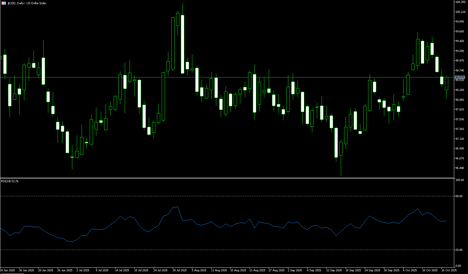 The impact of the pause in federal data releases, which has reduced economic transparency, is increasing downside risks for the US dollar index. If the US dollar index falls below 98.24 (the 50.0% Fibonacci retracement level from 100.26 to 96.22), further support at 98.05 (the 50-day simple moving average) and 98.00 (the round number mark) could be reached. A sustained break below this support level could lead to further declines to 97.46 (the October 1 low) and 97.17 (the 50.0% Fibonacci retracement level from 100.26 to 96.22). The 97.00 round number mark has become a key pivot point, reflecting hesitation among both bulls and bears. Furthermore, the 14-day relative strength index (RSI) is approaching 49, supporting a stalemate at the current price level, with bears currently holding a slight advantage. Conversely, if the US Dollar Index rebounds above 98.71 (the 61.8% Fibonacci retracement level) and 98.77 (the 10-day simple moving average), it could retest the 99.00 level. A further recapture of this level would strengthen the bullish bias towards 99.56 (a near two-month high).