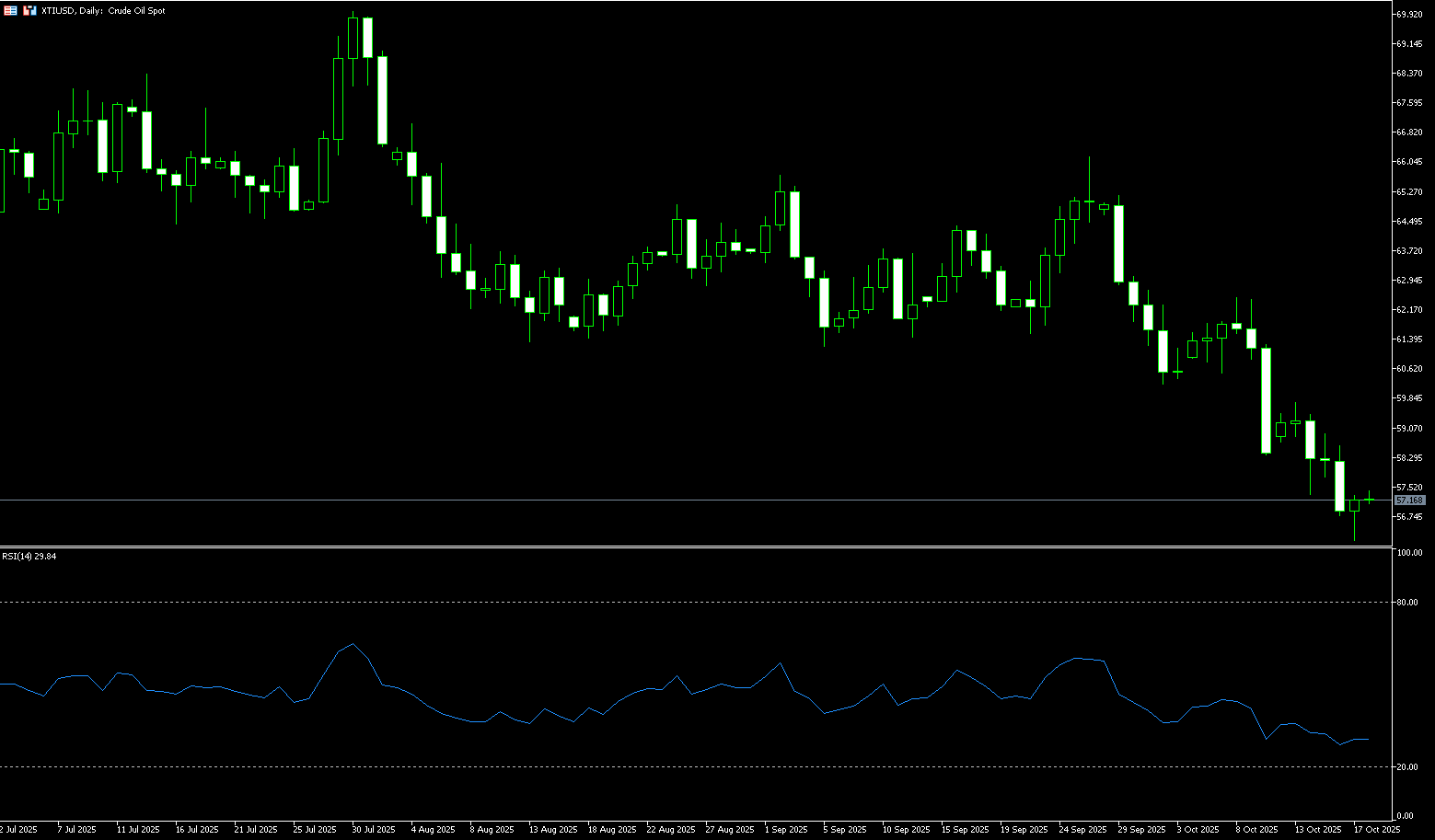 Daily chart technical analysis shows that the Australian dollar/US dollar remains bearish, as it remains within a descending channel pattern. Furthermore, the 14-day relative strength index (RSI) remains below 50, reinforcing the bearish tone. Furthermore, last week, the 10-day and 50-day simple moving averages formed a bearish "death cross" pattern. Therefore, on the downside, the Australian dollar/US dollar could test the October 14 low of 0.6440. A break below this channel support would strengthen the bearish trend and push the exchange rate to test the four-month low of 0.6414 set on August 21, and then the round number of 0.6400. A break below this level would test the five-month low of 0.6372. On the upside, the Australian dollar faces initial resistance at the 10-day simple moving average at 0.6530, followed by the October 10 high of 0.6572. A break above these moving averages would improve short- and medium-term price momentum, pushing the pair towards the psychologically important 0.6600 level. An eventual break above 0.6600 would trigger a bullish rally, supporting a move towards the 12-month high of around 0.6707 reached on September 17.