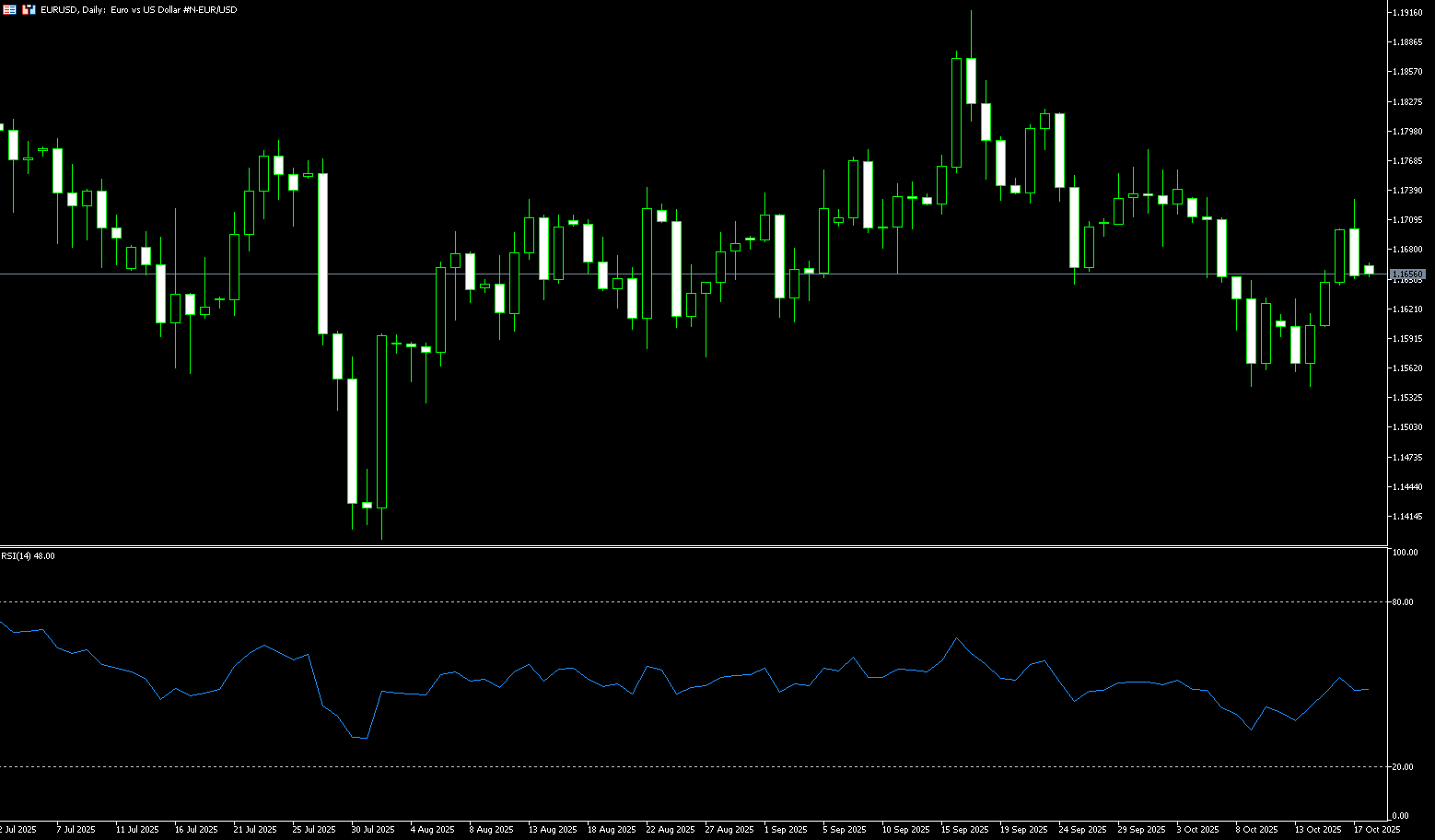 EUR/USD's bullish momentum improved last week, with the 14-day Relative Strength Index (RSI) on the daily chart rising slightly below 50, as the euro attempts to break through the downtrend line drawn from the July low. Currently, the pair is holding steady at the bullish "double bottom" formation of 1.1542 at the beginning of last week. This typically signals a trend reversal, and the pair briefly retraced above the key level of 1.1700 before the weekend. The double bottom pattern targets the September 18 high, near 1.1848. The 5-day moving average (1.1632) and the 9-day moving average (1.1625) formed a bullish "golden cross" pattern before the weekend. Therefore, the first resistance level is 1.1700 (round number), followed by the October 1 high of 1.1780, ultimately leading to the 1.1800 (round number) and 1.1818 (September 24 high). Looking down, the previous resistance level of 1.1625 (9-day simple moving average) now acts as the first support. If the price breaks below this level, the next level will be 1.1600 (round number). This would further re-establish the "double bottom" formation at 1.1542, the low of October 9 and 14.