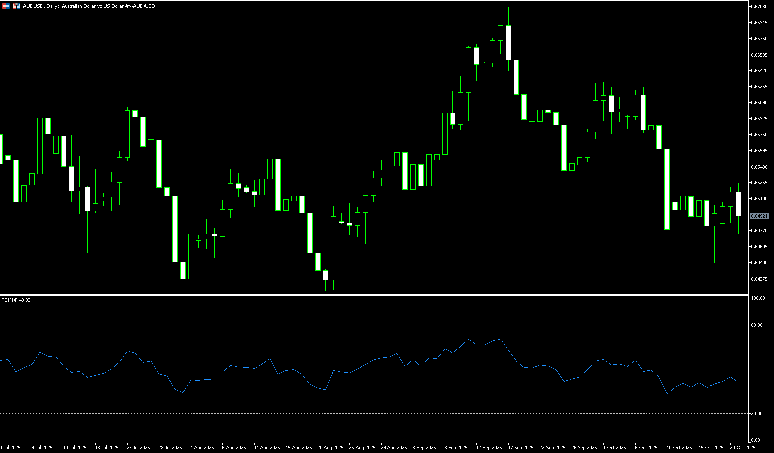 On Tuesday, AUD/USD was trading around 0.6500. Technical analysis of the daily chart suggests a persistent bearish bias as the pair trades below the 0.6538 (14-day simple moving average). The 14-day RSI remains below 45, reinforcing the bearish outlook. On the downside, AUD/USD could face resistance at the lower Bollinger Band level of 0.6455, a break of which could lead to a four-month low of 0.6414. A further break below this confluence support area would strengthen the bearish bias and push the pair towards a test of the five-month low of 0.6372. On the other hand, AUD/USD is testing the immediate hurdle of 0.6538 (14-day simple moving average), followed by the October 10 high of 0.6572 and the upper boundary of the descending channel around 0.6570. A break above this resistance area would improve short- and medium-term price momentum, pushing the pair towards the psychological level of 0.6600.