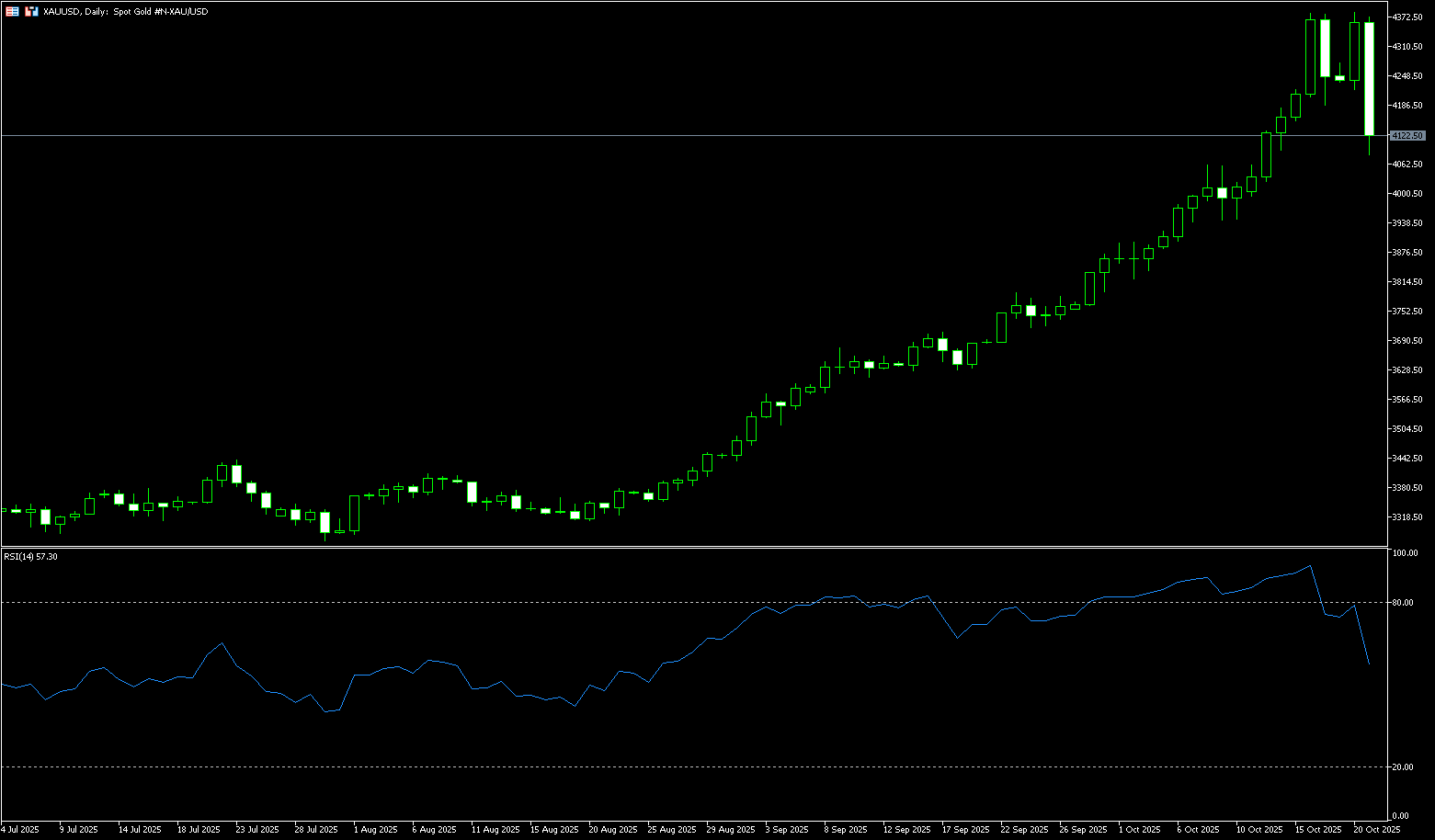 Gold prices plummeted as much as 6.0% to around $4,086 per ounce on Tuesday, marking their biggest one-day drop since April 2013, after reaching an all-time high of $4,391.60 on Monday. However, a bearish "piercing" pattern formed on Friday, a chart signal suggesting a short-term top may have formed. Despite this, the correction in gold prices remains, offering buyers a better entry point. The first support level lies at $4,100, followed by the previous all-time high-turned-support level at $4,059. If the spot price breaks below this level, the next target would be the 20-day simple moving average at $4,002.60. Conversely, if buyers push gold above $4,200, this would open the way to challenges at $4,250 and $4,300, followed by the all-time high at $4,391.60.