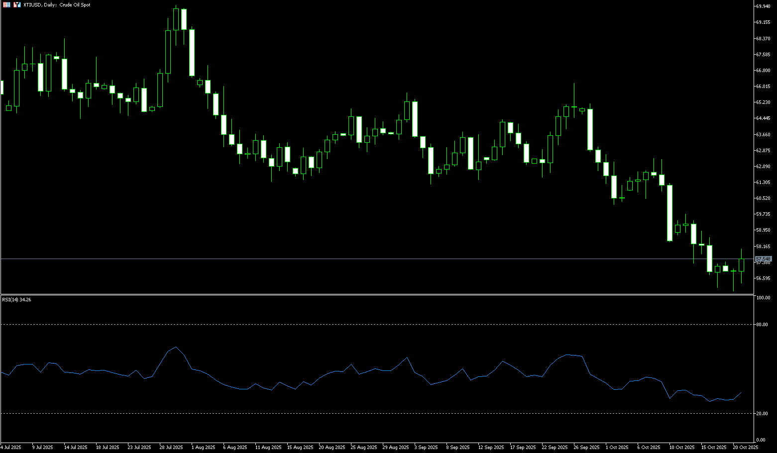 Oil prices have been in a downward trend for over three years. At the start of October, the decline accelerated as oil prices approached $55. In the short term, oil prices could reach a new low until 2025, coinciding with the lower limit of a 160-year historical trendline that consistently defines crude oil's long-term cyclical movements. The daily RSI indicator is approaching oversold levels for the first time since April 2025, suggesting that downward momentum may be fading. On the downside, the current lows of $55.14 (2025 support) and $54.78 (a near four-year low) remain valid. A break below these levels could extend the decline to around $49, a level that coincides with the lower limit of the channel and could form new support. On the upside, if oil prices recover above the resistance levels of $58.00 (round-number mark) and $58.08 (9-day moving average), bullish rallies could extend towards the psychologically important $60 level, respectively.