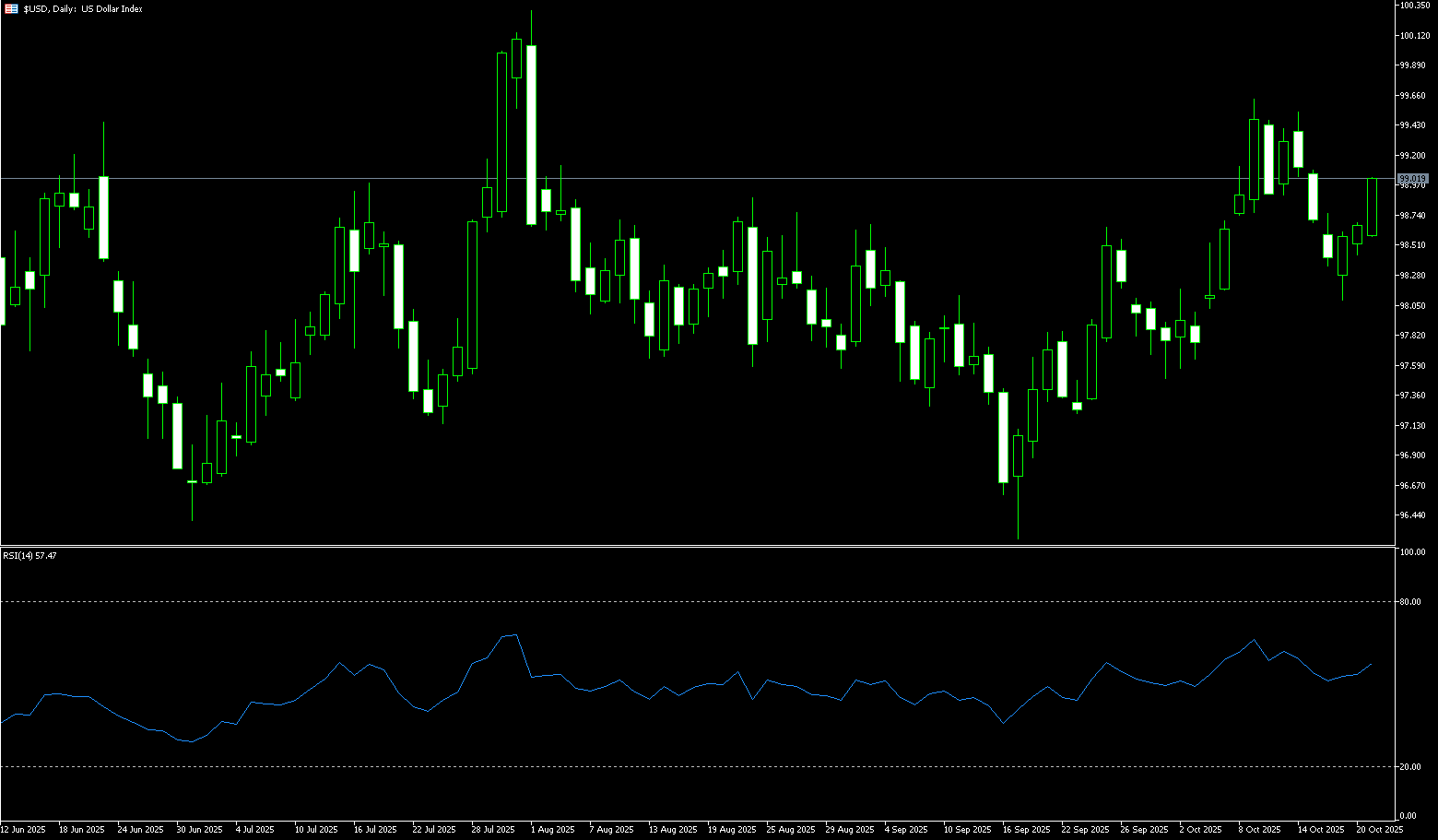 The US dollar index remained around 98.90 on Tuesday, trading sideways so far this week as investors continue to assess the impact of the ongoing government shutdown, trade-related, and monetary policy uncertainties on the US economic outlook. National Economic Council Director Kevin Hassett indicated that the shutdown could end this week, boosting hopes for an end to the economically devastating shutdown. On the trade front, President Trump stated that he expects to reach a fair trade agreement with Chinese President Xi Jinping in South Korea later this month. Meanwhile, investors await Friday's September CPI report, whose release is limited by the shutdown. The Federal Reserve is widely expected to cut interest rates by 25 basis points next week, with further cuts possible in December and next year.