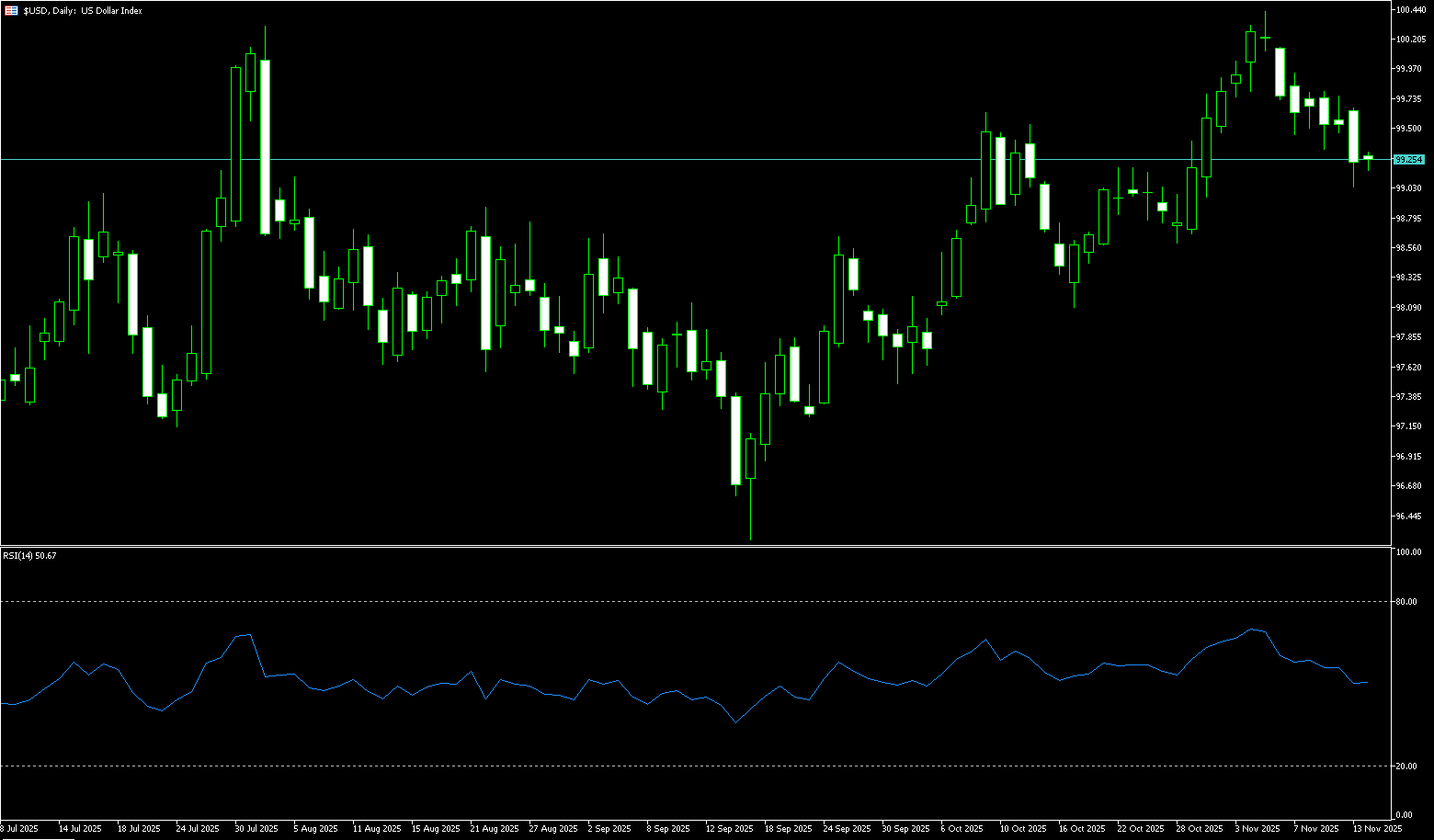 The index is currently finding support at the 200-day simple moving average of 99.92 and the 50-day simple moving average of 98.66. After breaking through the 25-day simple moving average at 99.30, prices rose slightly, with this midpoint becoming a battleground for both bulls and bears. The 14-day RSI is currently at 64, in a neutral-to-strong range, not yet overbought, indicating further upside potential. In the MACD indicator, the DIFF and DEA are about to cross downwards, and the MACD histogram is turning green, suggesting weakening short-term momentum and a potential pullback. However, as long as the DIFF doesn't fall below the zero line, the medium-term bullish structure remains intact. The US dollar index is facing resistance near 100.26 (the November 4th high) and the 100.50 level; if it falls back, watch the support levels at 99.92 (the 200-day simple moving average) and 98.66 (the 50-day simple moving average).
