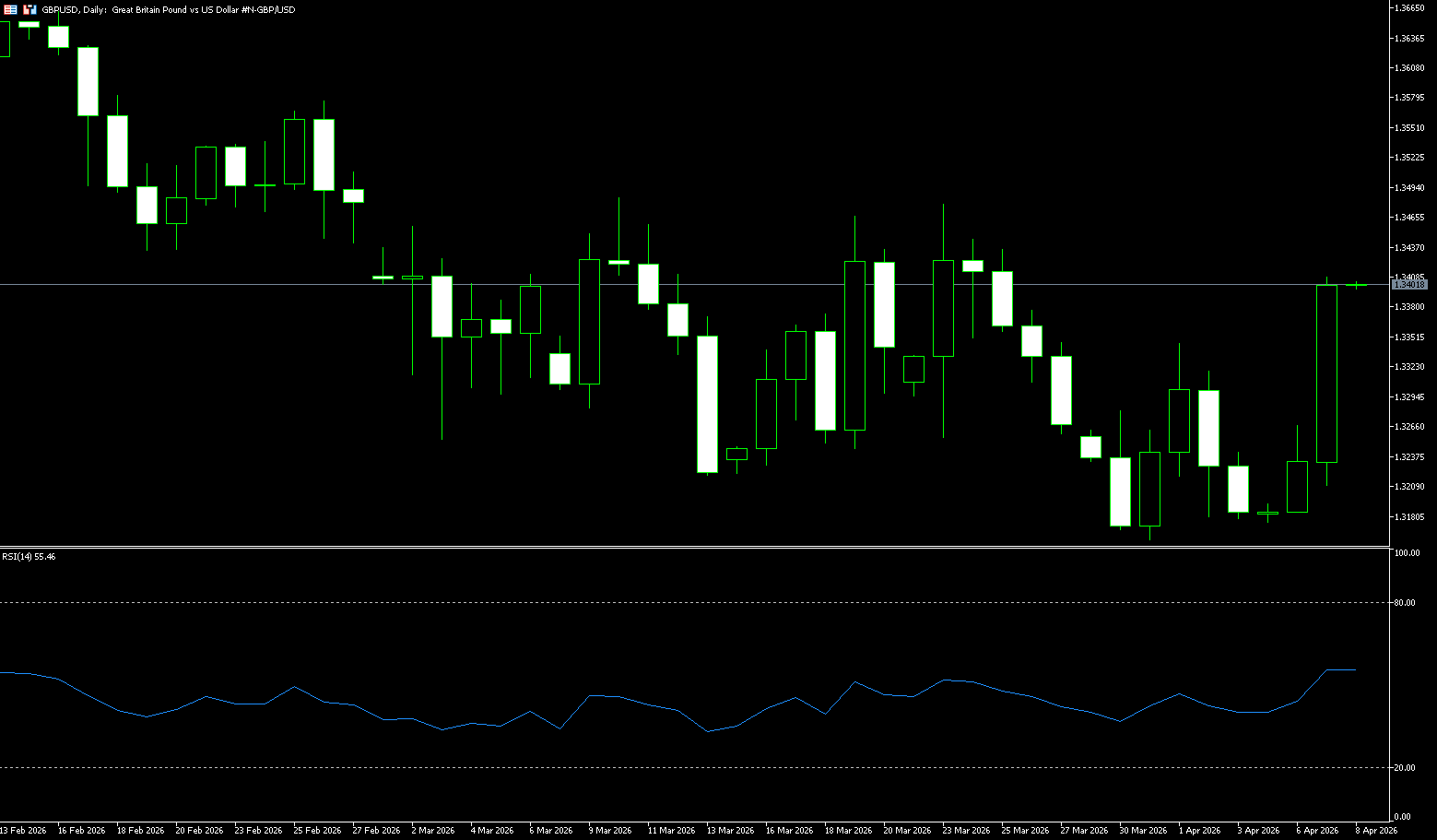 On the daily chart, GBP/USD is trading between 1.3280 and 1.3290. The short-term bias is mildly bullish, as prices have steadily held above the psychological level of 1.3200 and last week's low of 1.3159, a narrow range that supports the intraday trend. The latest 14-day Relative Strength Index (RSI) reading fell back to the lower half of the scale at 42.39 after failing to extend its earlier break above 70, indicating weakening upward momentum but no clear bearish reversal, while the spot price remains above the long-term intraday moving average. Immediate resistance is at 1.3300 (the psychological level). A break above this level would open up space for a further move towards 1.3347 (the 30-day simple moving average), maintaining the short-term bullish bias up to 1.3380 (the March 23 high).