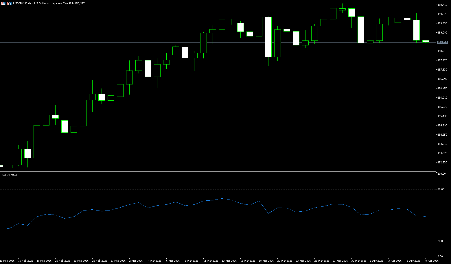 USD/JPY touched a one-week high in Asian trading on Tuesday, but lacked follow-through momentum and hovered below the psychological level of 160.00, with mixed fundamental signals. Data released by Japan's Ministry of Internal Affairs and Communications showed that household spending fell 1.8% year-on-year in February, a further deepening of the 1.0% decline in the previous month and marking the third consecutive month of decline. On a monthly basis, personal spending rose 1.5% for the first time in three months, partially recovering from the 2.5% drop in January, but falling short of market expectations. This, in turn, weakened the yen and contributed to the rise in USD/JPY. Meanwhile, the ongoing war in Iran exacerbated concerns about significant pressure on the Japanese economy in the foreseeable future, given its reliance on oil imports from the Middle East. This further dampened market bets on an immediate interest rate hike by the Bank of Japan, becoming another factor weighing on the yen. However, market speculation that authorities might intervene to curb further currency weakness helped limit deeper declines in the yen.