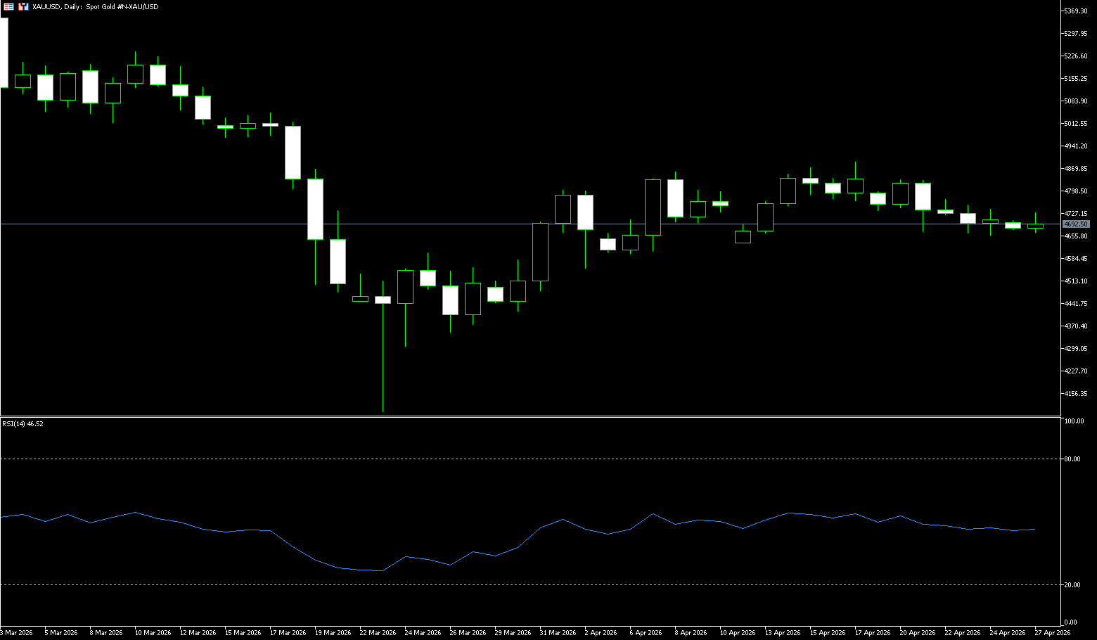 Gold prices remain bearish in the short term, trading below the 9-day simple moving average ($4753), and are currently seeking a further break below the bottom of the ascending channel at $4,680.50. The break from channel support indicates weakening upward momentum. Meanwhile, the Relative Strength Index (RSI) is at 44.50, near oversold territory, while the Moving Average Convergence Divergence (MACD) remains negative, around -4.92 below the zero line. This reinforces the continued downward pressure rather than indicating an impending reversal. Therefore, further weakness would risk a tentative decline in gold prices. Resistance lies near the psychological level of $4,720, with stronger resistance at the 9-day simple moving average at $4,753, and even higher at the psychological level of around $4,800. Only a break above these resistances could begin to alleviate the current bearish sentiment. On the downside, watch for $4,632.70 (April 13 low) and the $4,600 level (psychological key level).