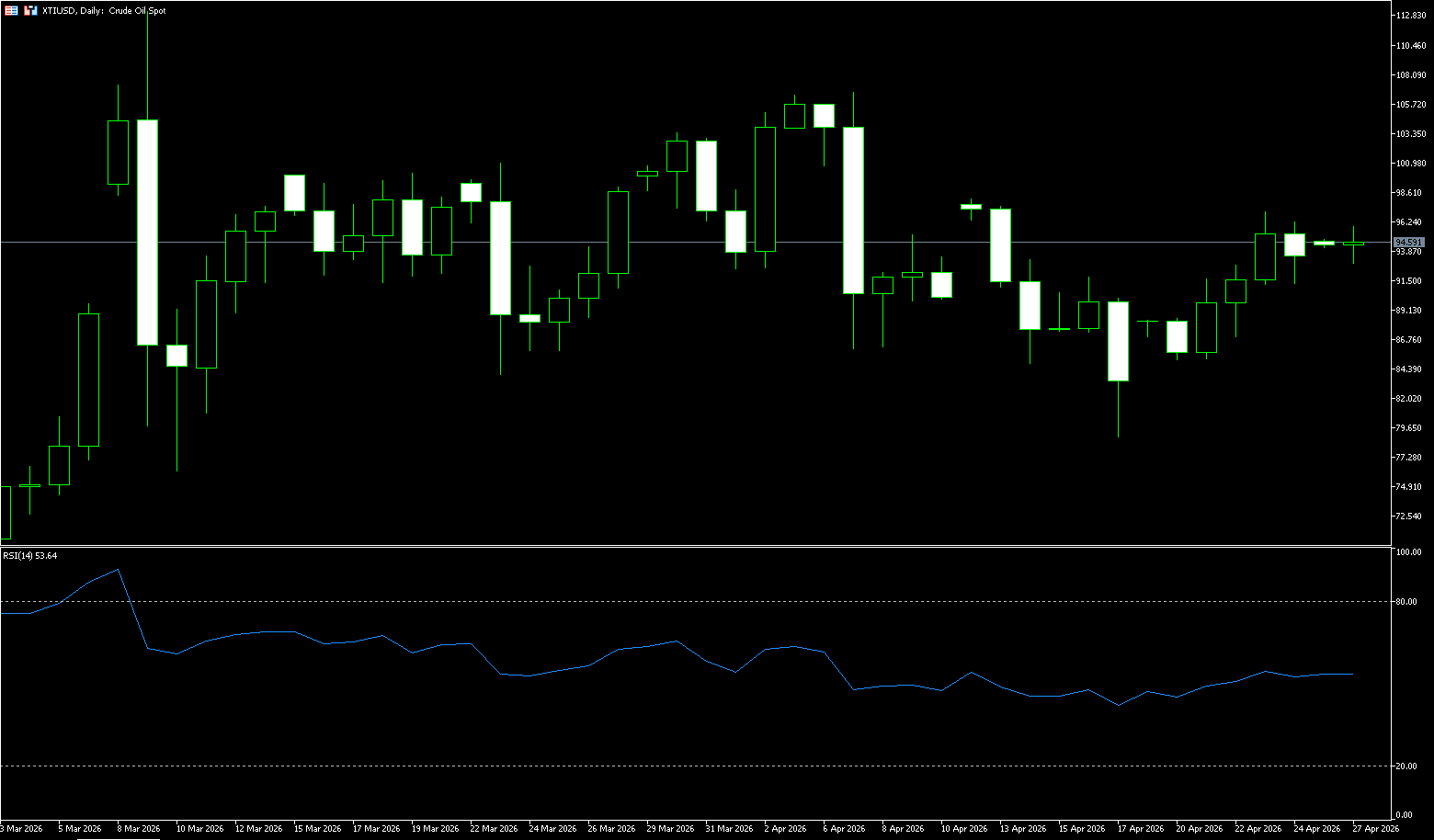 The core driver of the current crude oil market remains supply-side uncertainty, particularly the risk premium resulting from restrictions on key shipping routes in the Middle East. Against this backdrop, oil prices generally still possess upward momentum. However, a stronger dollar and a high-interest-rate environment are constraining oil prices, creating a volatile market with both upward pressure and downward support. Future trends will depend on whether geopolitical tensions escalate further and changes in the policy paths of major central banks. Investors need to closely monitor the interplay between supply recovery progress and macroeconomic policy signals. From a technical perspective, on the daily chart, WTI crude oil maintains an upward-trending structure, with prices continuing to trade within a medium-term upward channel. Short-term support levels are located near the psychological level of $92.50 and $90.00, while key resistance levels are concentrated at $98.00 and $100.00. In terms of momentum, bullish forces still dominate, but the pace of the rise has slowed.