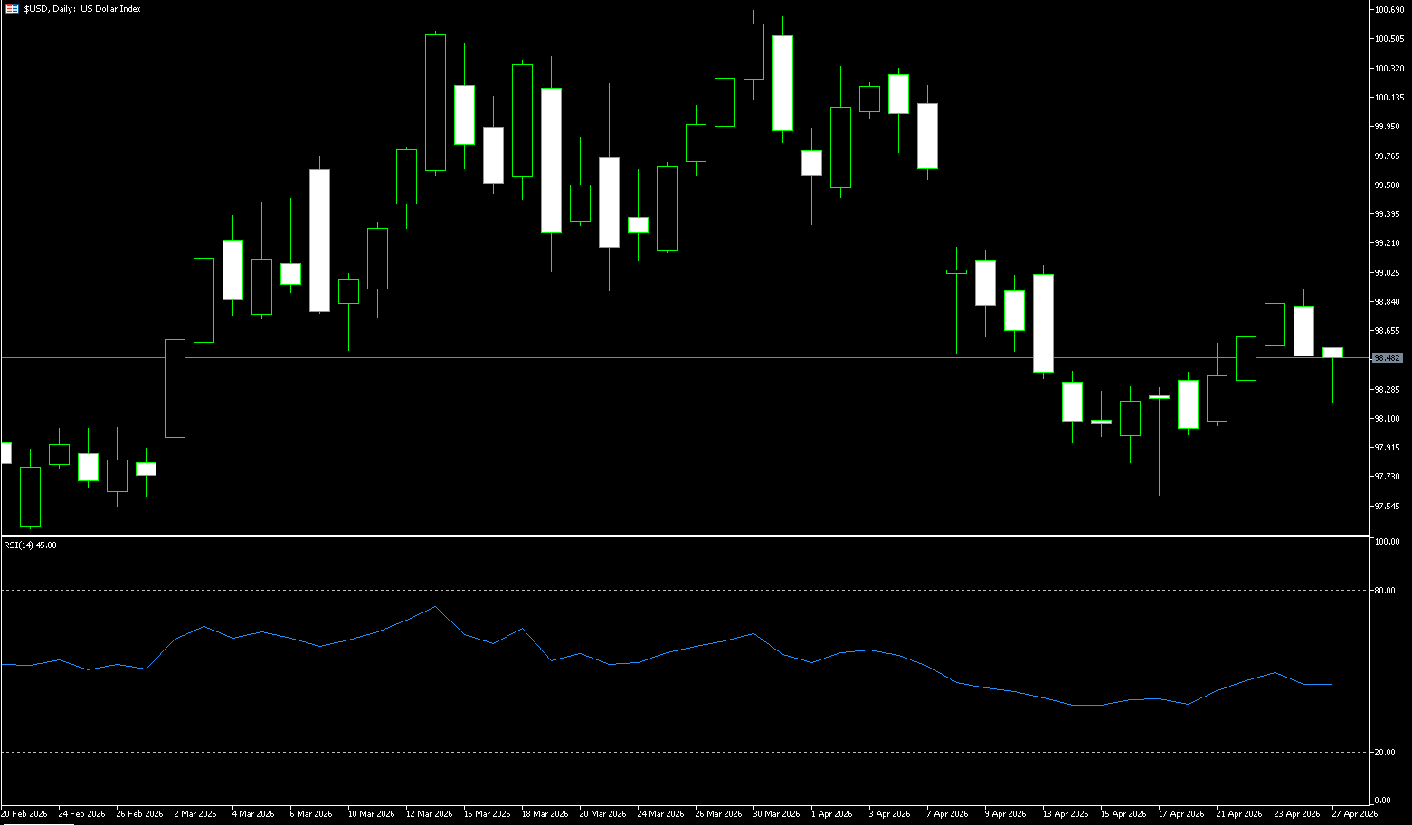 From the 4-hour chart, after bottoming out at 97.63, the US dollar index has formed a bullish pattern with the 9-day moving average at 98.38 as its core support. The medium-term bullish momentum has not yet shown signs of weakening. Currently, the index is in a technical pullback phase after the rise. The RSI indicator has fallen to 44.85, without forming a bearish divergence after overbought conditions. This pullback is a normal correction within the bullish trend and has not disrupted the upward momentum. The key short-term level is the 200-day simple moving average at 98.54. If the pullback does not effectively break below this range, the bullish trend will continue, testing the previous high resistance levels of 98.94 (last Thursday's high) and 99.00 (the psychological level). If it effectively breaks below this level, we need to be wary of a weakening trend and the risk of a pullback to the 98.00 psychological level and the 97.63 (April 17th low).