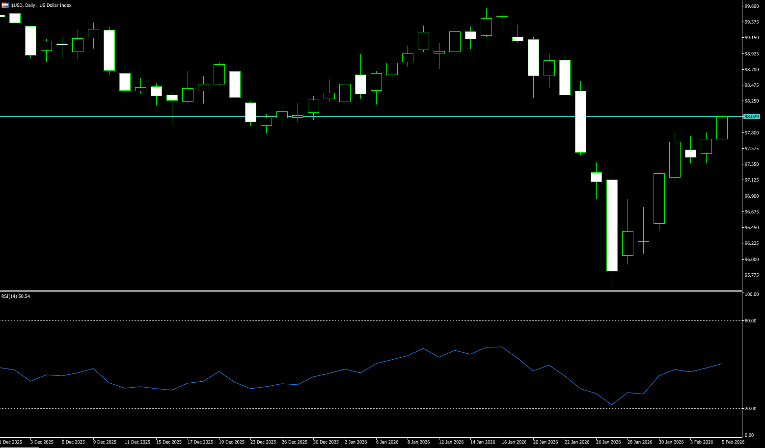 Đối với chỉ số đô la Mỹ, cần tập trung vào hai chủ đề chính: thứ nhất là việc công bố dữ liệu việc làm; và thứ hai là những thay đổi trong đường cong lợi suất cũng như hình thái của các đợt đấu thầu Trái phiếu Kho bạc. Sự gia tăng liên tục của lợi suất Trái phiếu Kho bạc Mỹ kỳ hạn 10 năm cung cấp sự hỗ trợ đáng kể cho đồng đô la. Trong khi đó, do sự biến động đáng kể của vàng, các dòng vốn trú ẩn an toàn hiện đang chảy vào đồng đô la và Trái phiếu Kho bạc Mỹ. Tuy nhiên, chúng ta phải cảnh giác với rủi ro suy yếu động lượng sau khi hoạt động mua bù thiếu (short covering) kết thúc và những giới hạn tiềm năng đối với bất kỳ đợt hồi phục nào dưới triển vọng giảm giá dài hạn của các tổ chức. Về mặt kỹ thuật, khả năng phục hồi của đồng đô la bất chấp các yếu tố tiêu cực, vị thế nằm trên và cách xa giới hạn trên của phạm vi giao dịch, cũng như vị thế nằm trên và cách xa các đường trung bình động 5 ngày và 10 ngày đều cho thấy động lượng tăng giá mạnh mẽ. Rất có khả năng sau một thời gian tích lũy ngắn, đồng đô la sẽ tiếp tục tăng. Do đó, các mục tiêu phía trên bao gồm 98.00 (mức tâm lý) và 98.33 (đường trung bình động 50 ngày). Các mức hỗ trợ cần theo dõi là 97.31 (mức thấp ngày 4 tháng 2) và 97.00 (mức tâm lý).