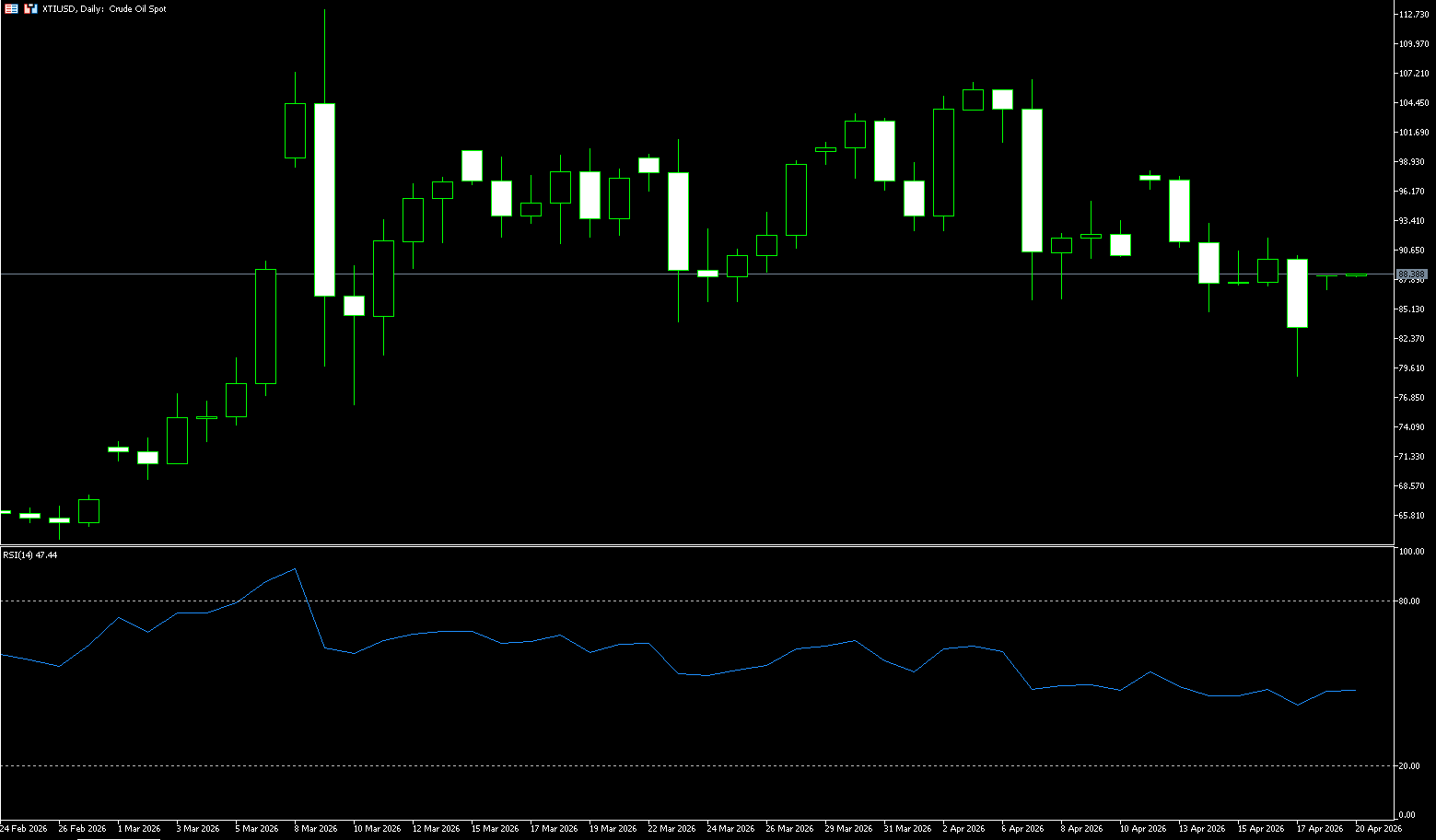 Dầu thô WTI hiện đang trong giai đoạn tạo đáy tích lũy yếu sau đợt giảm mạnh từ các mức đỉnh. Tâm lý giảm giá ngắn hạn chiếm ưu thế, trong khi xu hướng trung hạn đang yếu đi, với phạm vi cốt lõi từ $80-$100. Quan sát các chuyển động giá gần đây, phạm vi giao dịch của dầu thô WTI đã dần mở rộng: từ mức $70-$100 ban đầu đến phạm vi động hiện tại là $90-$120+, với các biến động chủ yếu từ $20-$30. Hiện tại, một đợt biến động biên độ rộng có khả năng sẽ chiếm ưu thế – sự tác động qua lại giữa nguồn cung thắt chặt và nhu cầu yếu đang khiến giá dao động thường xuyên trong một phạm vi rộng, thay vì hội tụ. Nhìn vào khung thời gian dài hơn, quanh các mốc hàng tháng (như ngày 1 tháng 5): nếu các cuộc đàm phán không đạt được tiến triển thực sự hoặc xung đột chỉ leo thang ở mức độ hạn chế, giá dầu có thể tăng lên các mức cao hơn (120+ hoặc thậm chí 130 USD), nhưng nhu cầu sụt giảm mạnh sẽ nhanh chóng kéo giá trở lại, hình thành một giới hạn trên mới cho "phạm vi đã mở rộng".
